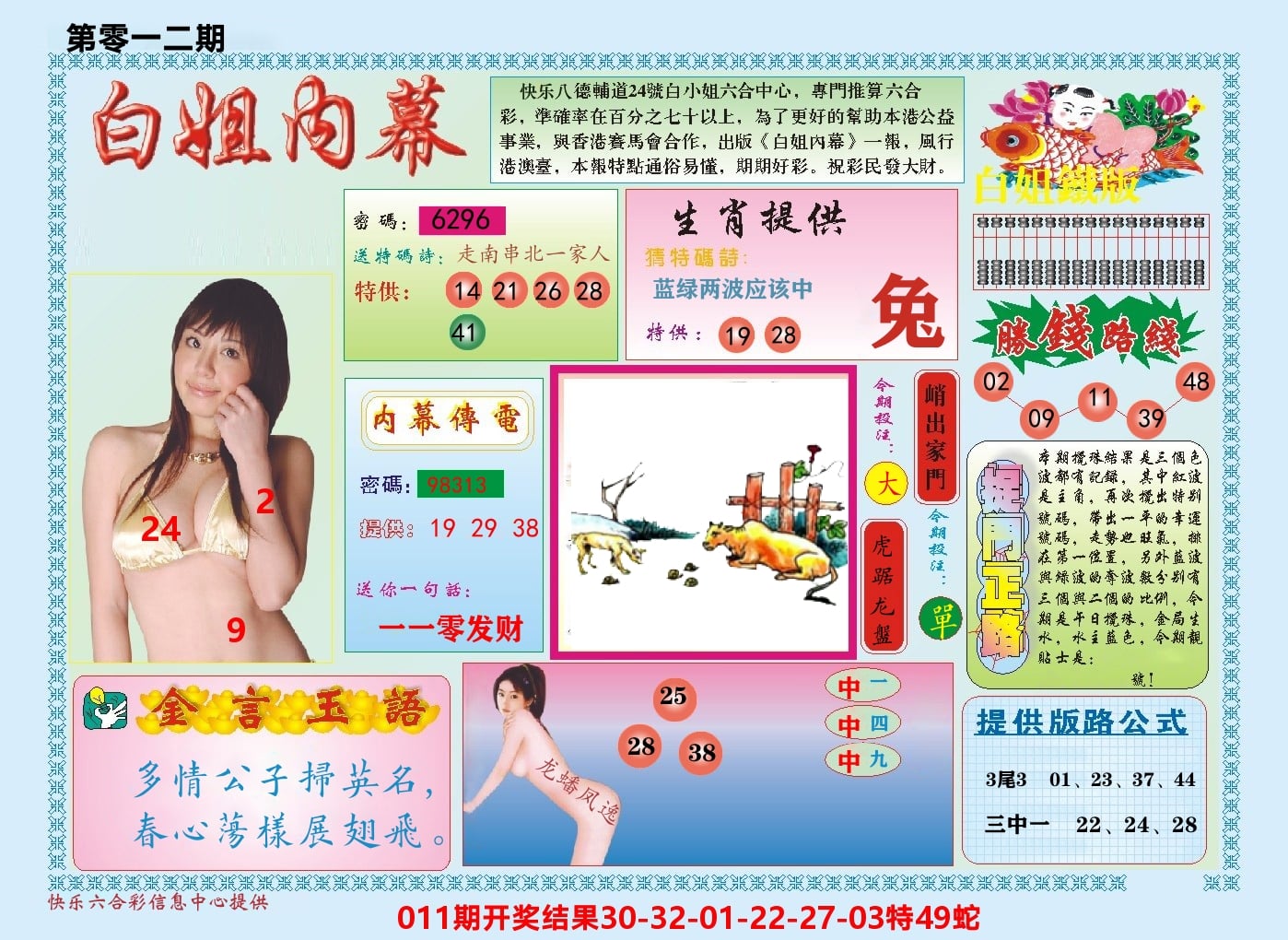011期⑤肖【猴蛇牛马兔】开 蛇49 准